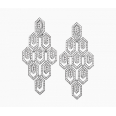 Bulgari宝格丽Serpenti系列标志之作的灵感源自神秘灵蛇褪去蛇皮以积极求变并重获力量的蜕变特质,自1948年以来便始终是无尽更迭的贴切象征。Serpenti系列白色18K金耳环,悉心镶嵌熠熠生辉的密镶钻石,巧妙融合卓越工艺与非凡佩戴体验,尽显难以抵挡的迷人风采与历久弥新的隽永美感。作为力量与自信的不竭源泉,始终与时俱进。